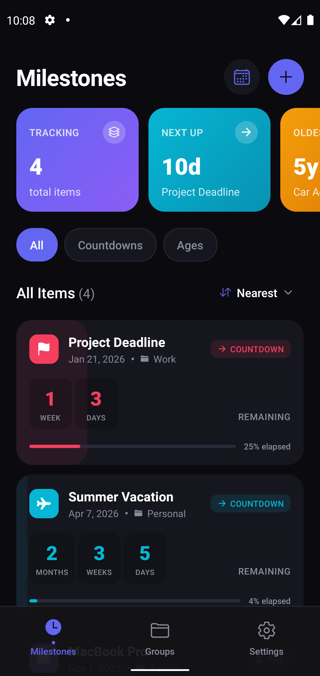 From countdowns to count-ups, reminders to organization — Milestone has you covered.